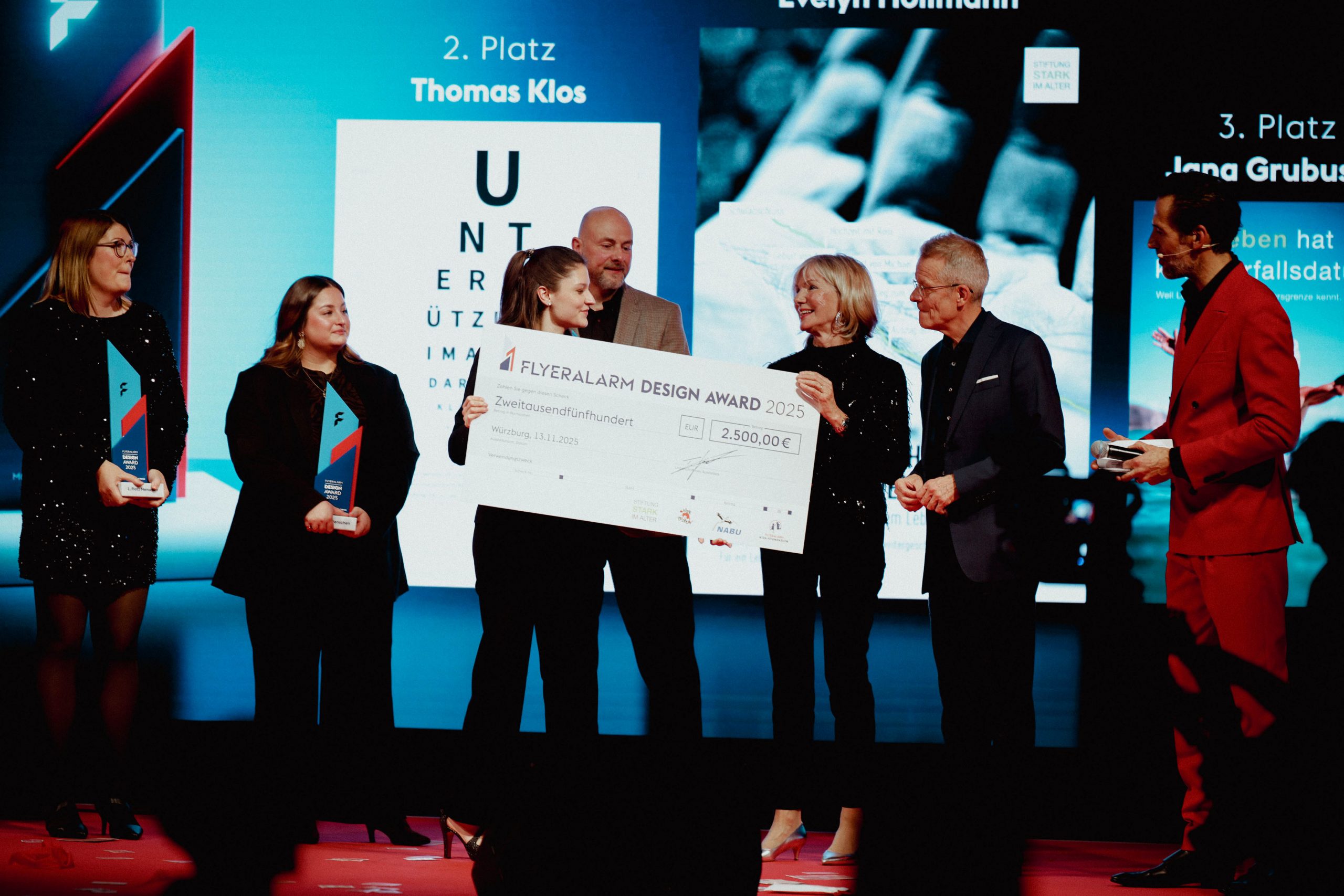 Ich freue mich riesig darüber, beim Flyeralarm Design Award 2025 den 3. Platz in der Kategorie „Menschen“ für die Kampagne der Stiftung „Stark im Alter“ erhalten zu haben – und das bei über 400 eingereichten Motiven. Dieser Moment bedeutet mir unglaublich viel.